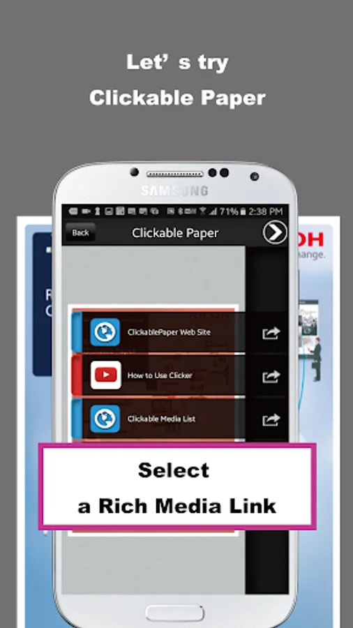 CP Clicker is an easy-to-use mobile app for Clickable Paper service by RICOH.