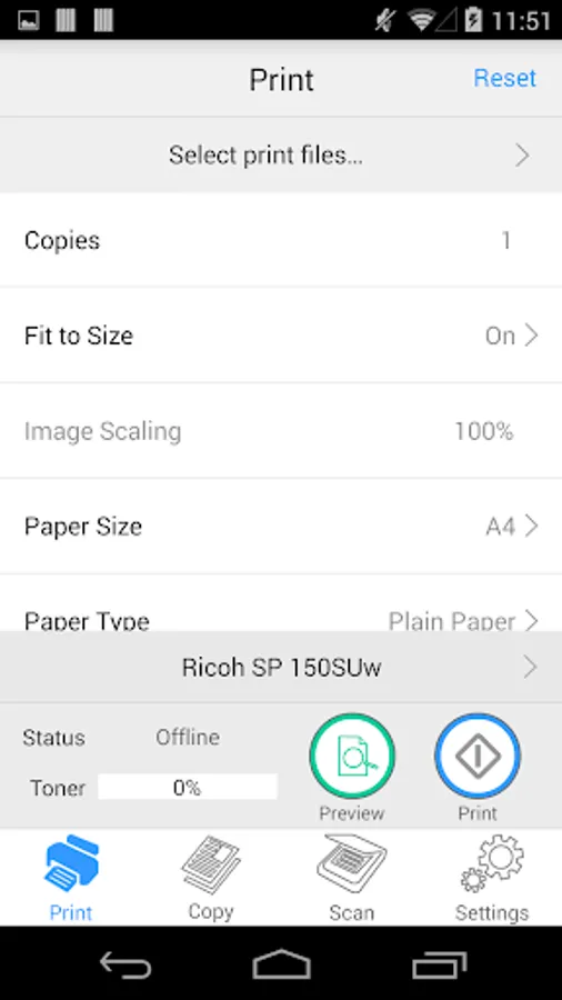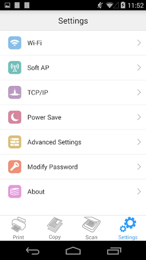 * Ricoh Printer allows users to do Print, Copy, Scan, change settings, and see status of the printer from smart devices.