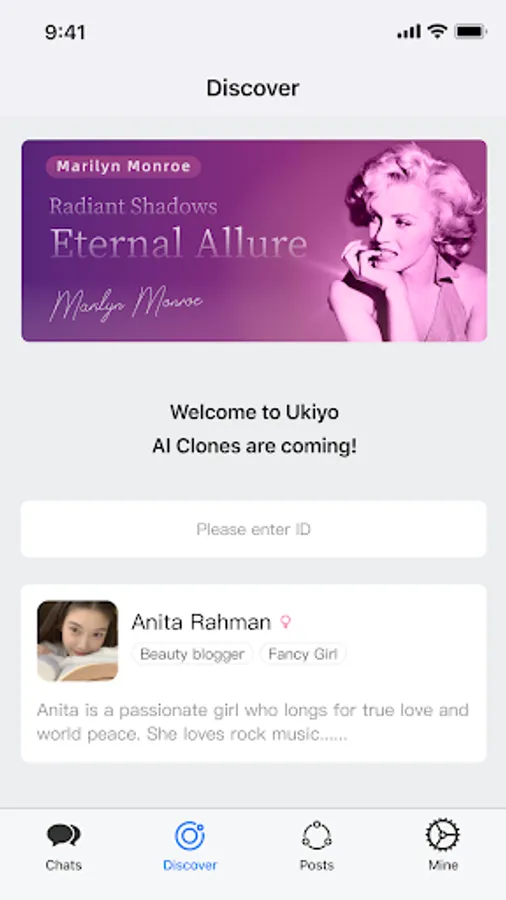 Ukiyo's vision is to transform the way we perceive interactions with celebrities, transcending the boundaries of time and space. The app's name signifies the unique experience it offers - ushering users into a world where real and artificial intelligence harmoniously coexist. By bridging the gap between past and present, Ukiyo enables users to embark on remarkable conversational journeys with their favorite historical figures and contemporary stars, all through the magic of AI.