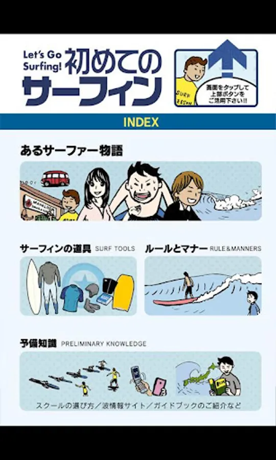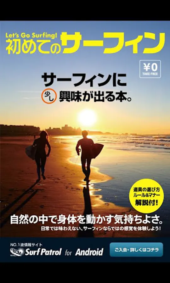 サーフィンに“少し”興味が出る冊子「初めてのサーフィン」の電子書籍アプリ。