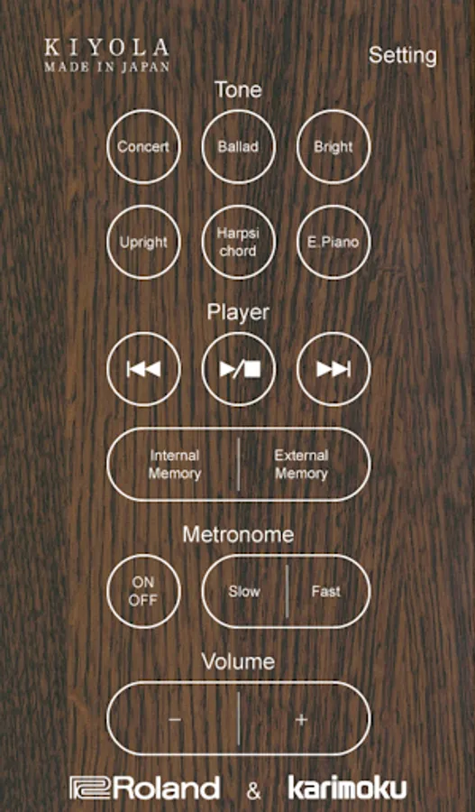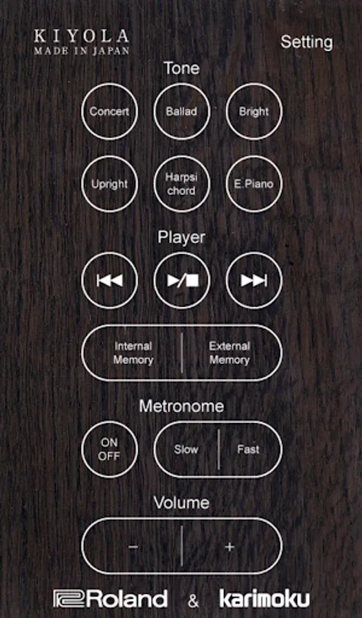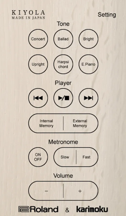 KIYLOA Remote Control is an app for the KIYOLA KF-10 digital piano, a collaboration between Roland and Japanese furniture designer Karimoku.