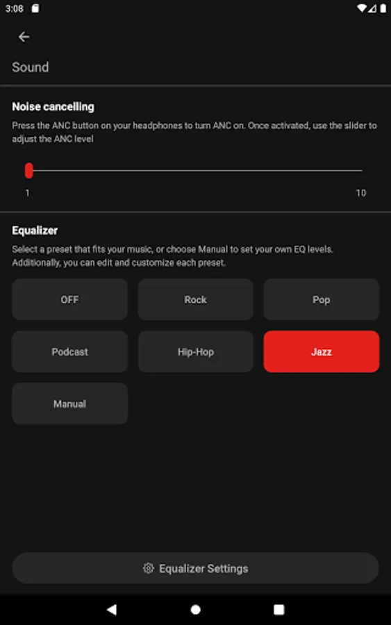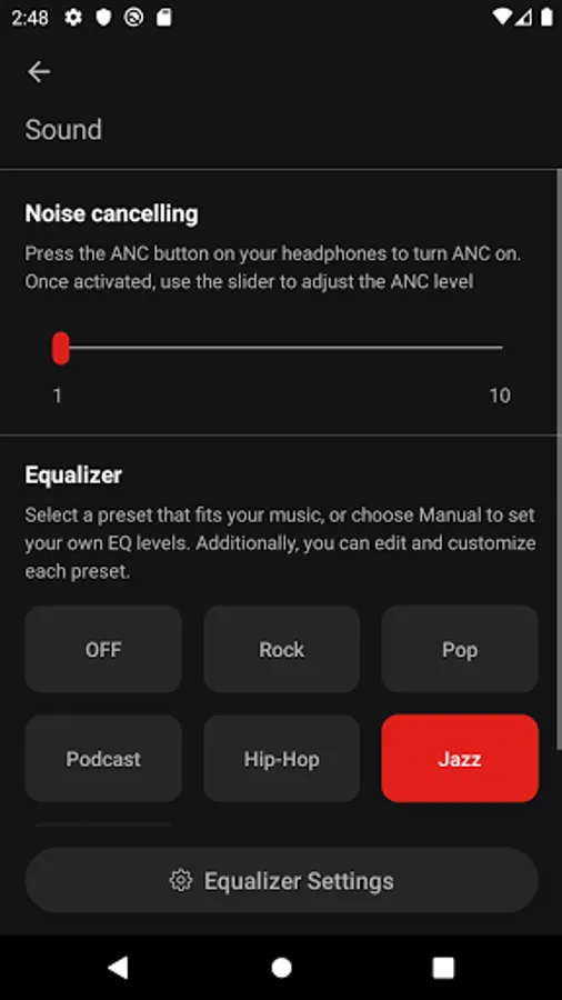 The EQ tool allows you to select the perfect Sound EQ preset for whatever you’re listening to. Take matters into your own hands by customizing each level to your liking, or create your own sound signature entirely from scratch.