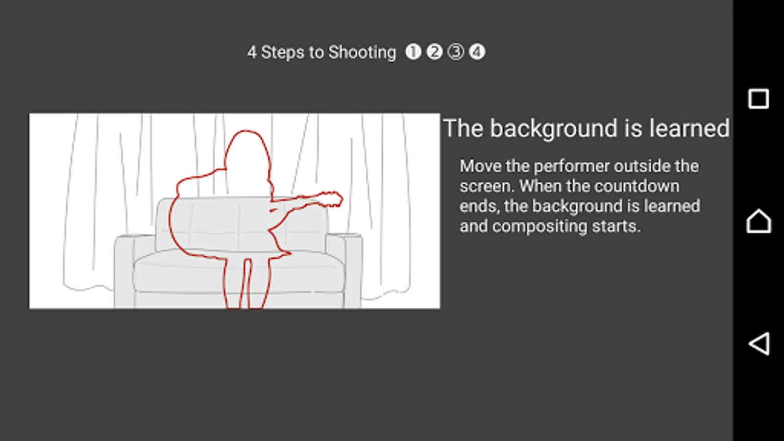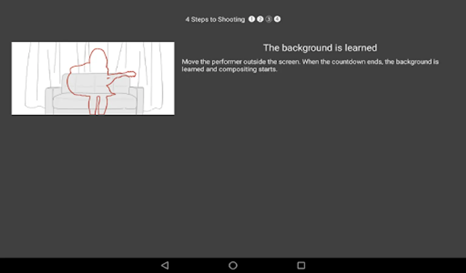 - Please do not move smartphone or tablet while shooting to keep backgrounds replacing.