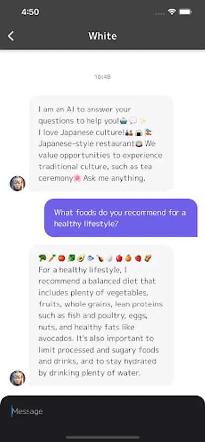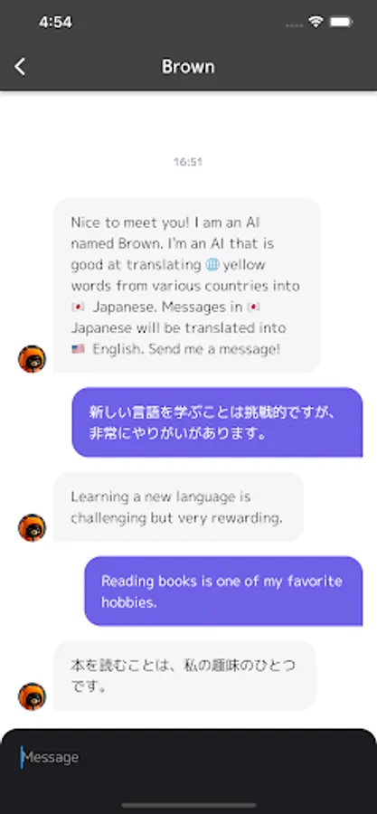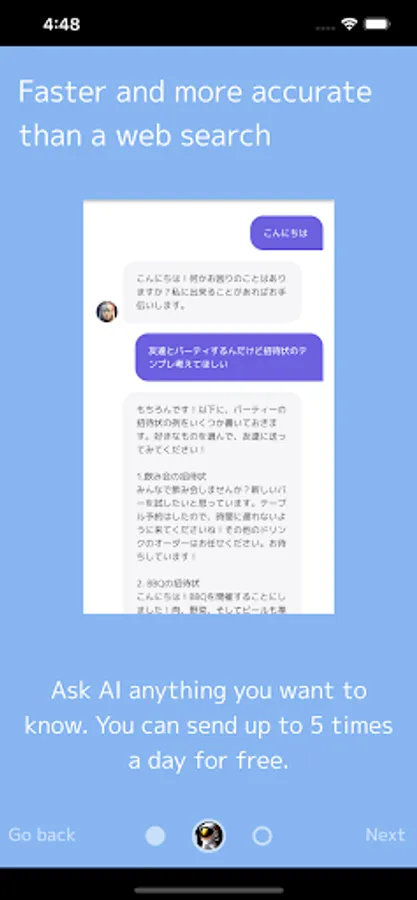 Just by entering text on the chat screen, you can have a conversation with an artificial intelligence assistant.