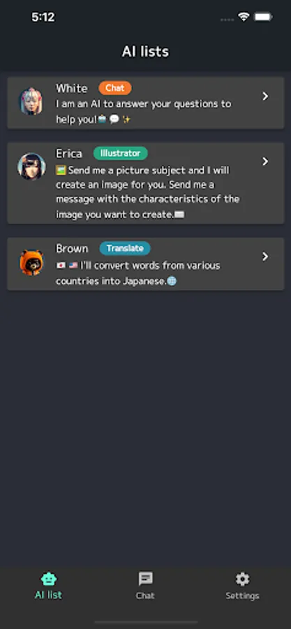 This is an application that allows users to customize their own ChatGPT, Stable Diffusion, etc., the latest AI technology, and have conversations in a chat format similar to LINE.