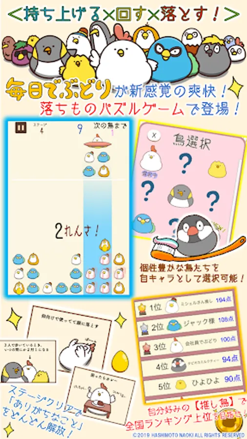ステージに配置された鳥のうち、マークのついた鳥を全て消すとステージクリアになります。