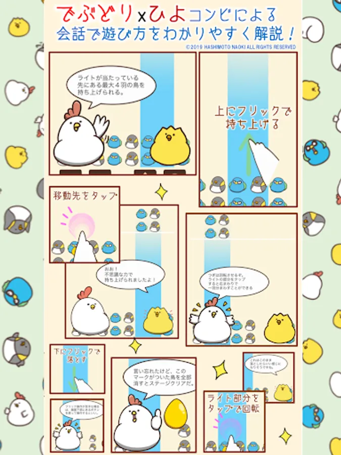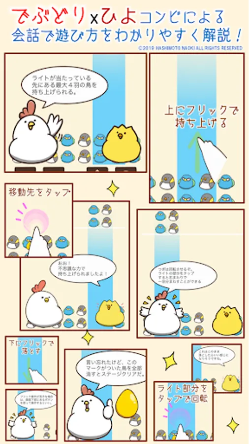 ゲームの遊び方は「でぶどり」と「ひよ」のコンビが漫画で楽しく解説してくれます!