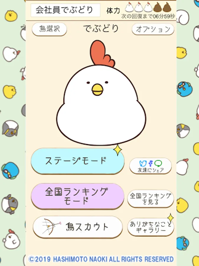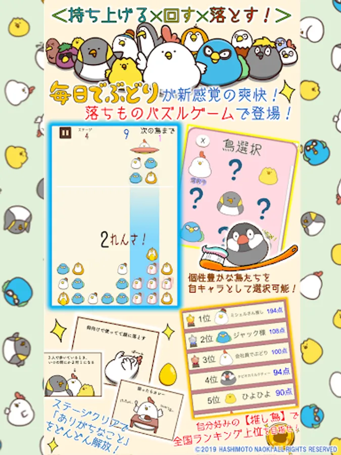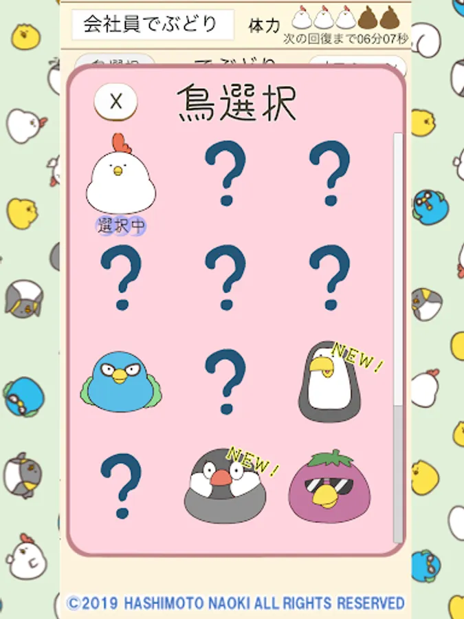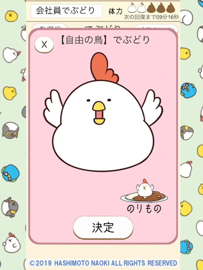 毎日でぶどりに登場する個性豊かな鳥たちを自キャラとして選択可能!