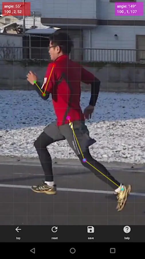 You can create segments by moving the marks freely, so you can get the angle of arms or legs, or inclination of body.