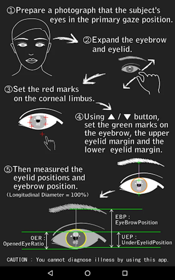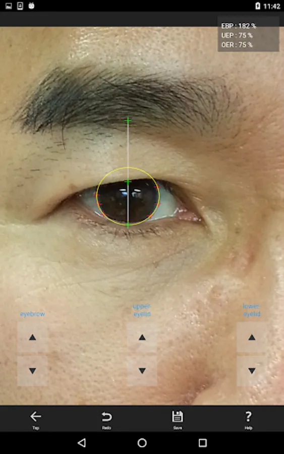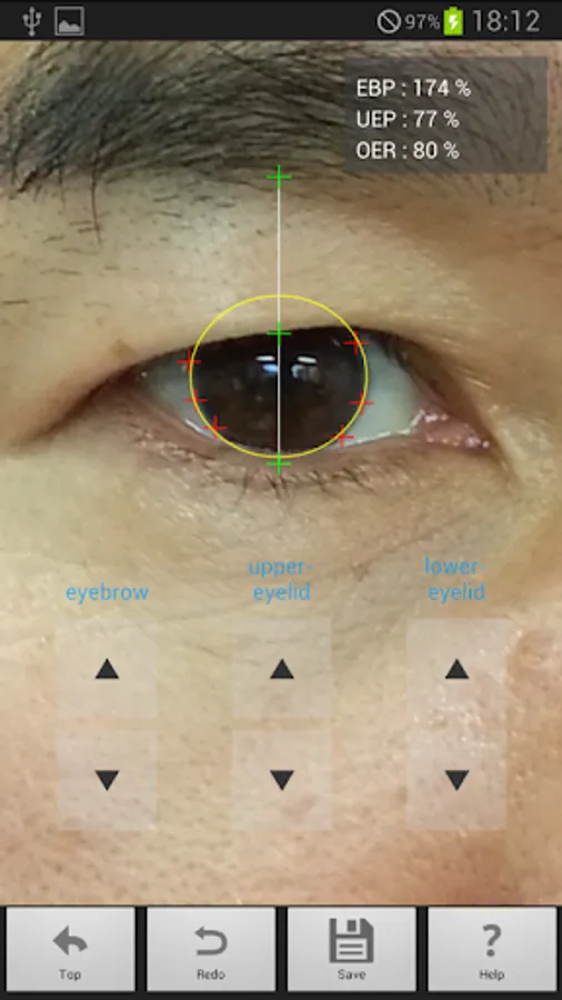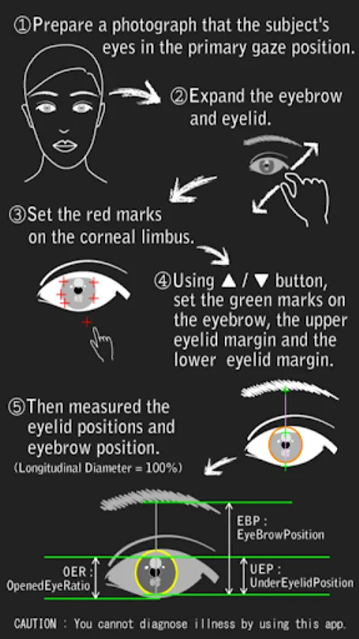 Step 5. Then measured the upper eyelid position (UEP), eyebrow position (EBP) and opened-eye ratio(OER).