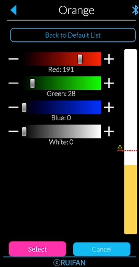 Within the app, you can create luminous color freely by adjusting the color balance of LED's RED / GREEN / BLUE / WHITE (one1, one1 RB is + YELLOW).