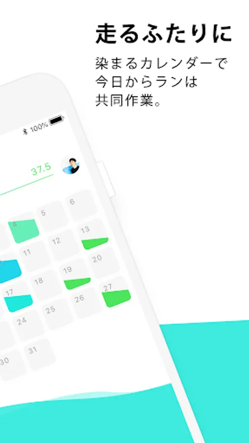 A calendar that beautifully blends 2 chosen colors based on how much each of you have run that day.