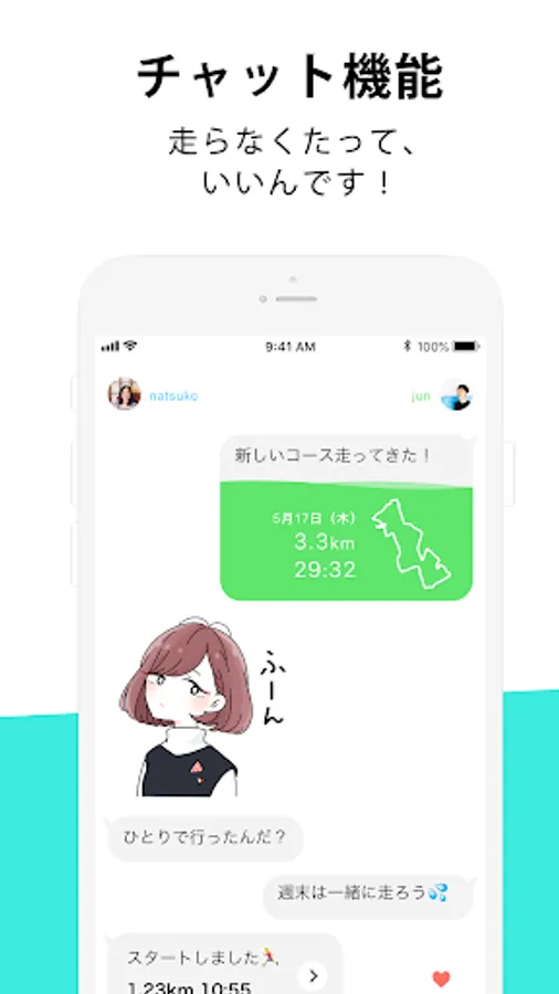 Share where you’re currently running and even after the run is over you send messages in real-time to chat about your jog!