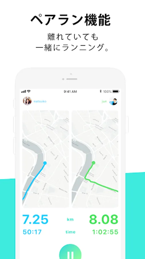 Even if you are apart, you will feel close to each other just by viewing your combined running data screen.