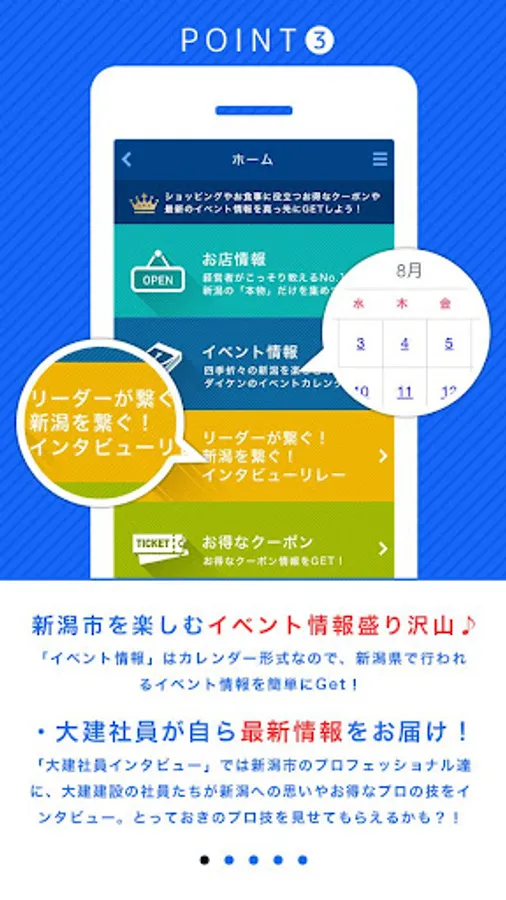 In addition, not only store information, covering the event information of Niigata City in the event calendar. Check the event from the calendar I thought, "What you try today?".