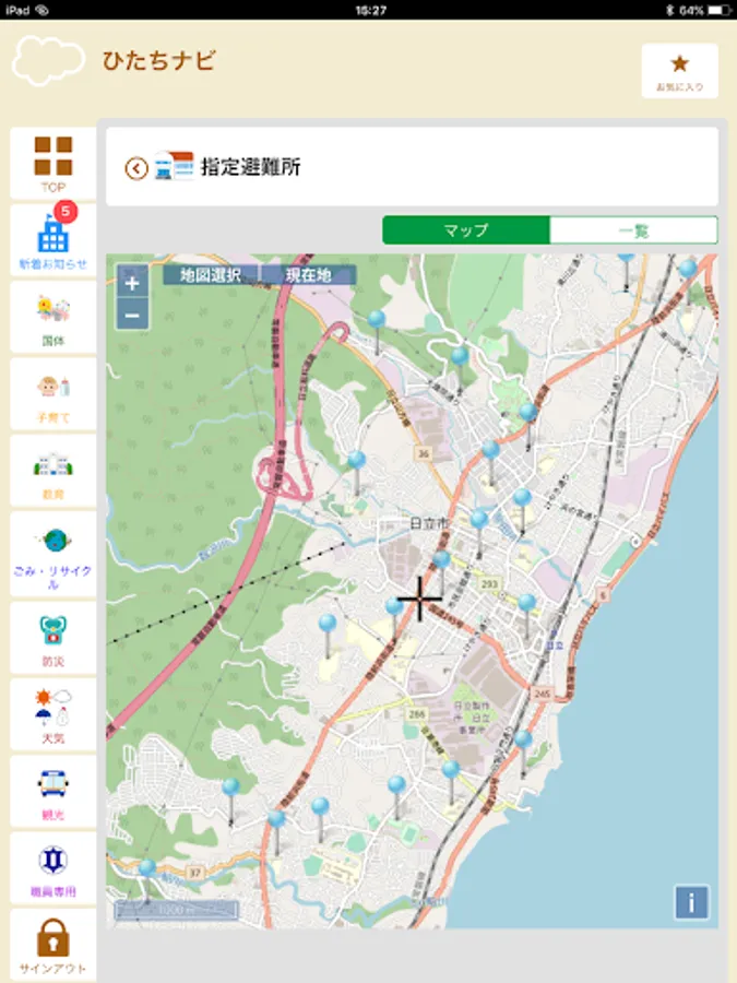 ■ You can check nearby evacuation centers and get route guidance from your current location.