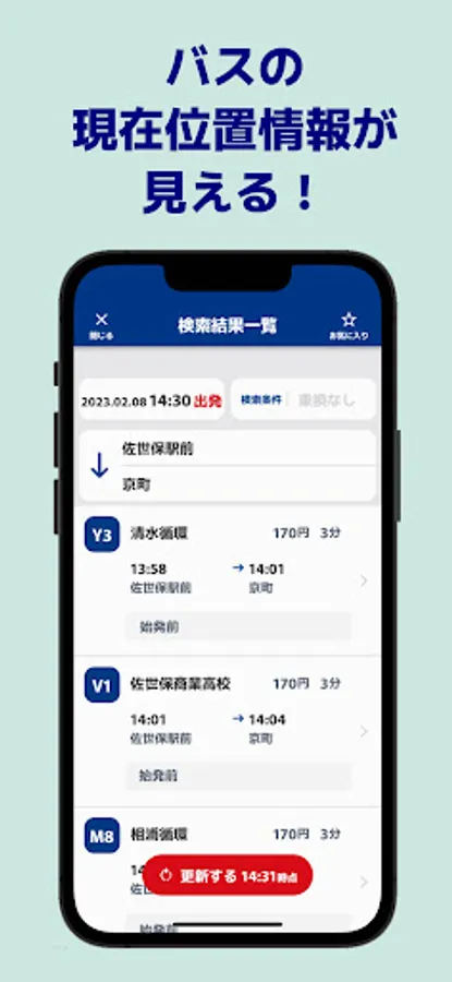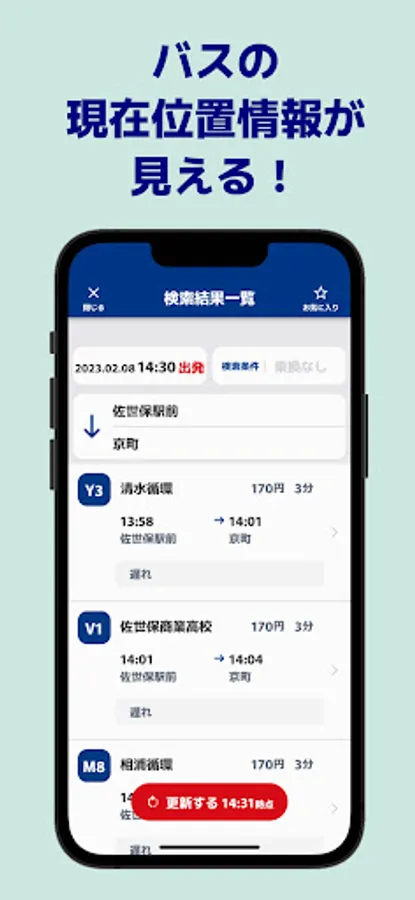 If you save a combination of bus stops that you have searched once, you can search for them immediately from the next search using the "Favorites" function in the menu.