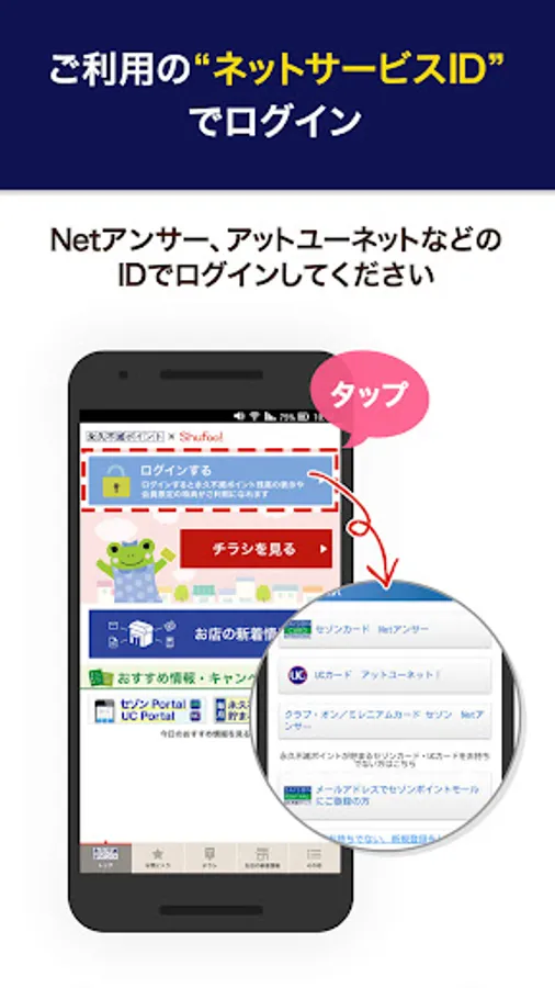 "Eternal Immortal Point x Shufoo! App" is an app provided and operated by Credit Saison Co., Ltd. It is available free of charge to those who have registered for Net Answer, At You Net, and Saison Point Mall.