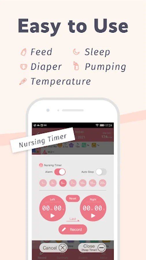 You can log childcare records and check recent records, and use the breastfeeding timer.
