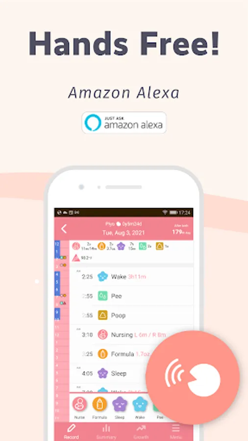 PiyoLog - Newborn Baby Tracker works with Amazon Alexa and can be recorded by voice.