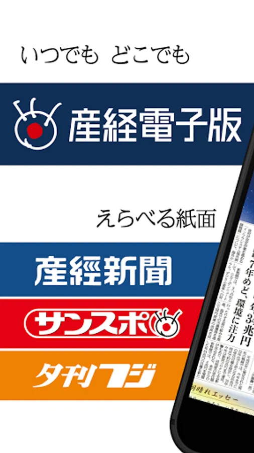 The Sankei electronic version app has been renewed. The Sankei Electronic Edition is an electronic newspaper service that supports multiple devices and can be used on PCs, smartphones, and tablets. This app is a read-only app that allows you to read newspapers on your smartphone or tablet. With this renewal, "breaking news" and "search function for articles posted on paper" have been newly added. Please use the Sankei electronic version app, which is easier to use than ever before.