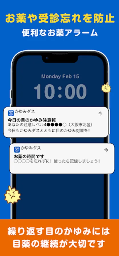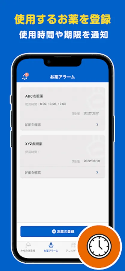 “In the treatment of recurring itchy eyes, it is important to continue using eye drops every day. Stay motivated with medication alarms. 』