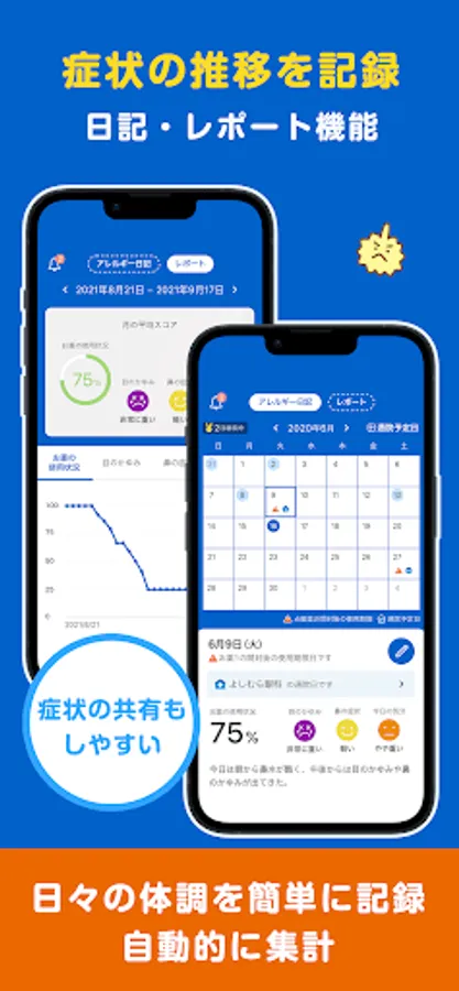 Easily record your daily physical condition. You can share the contents with doctors and pharmacists by displaying automatically aggregated reports.