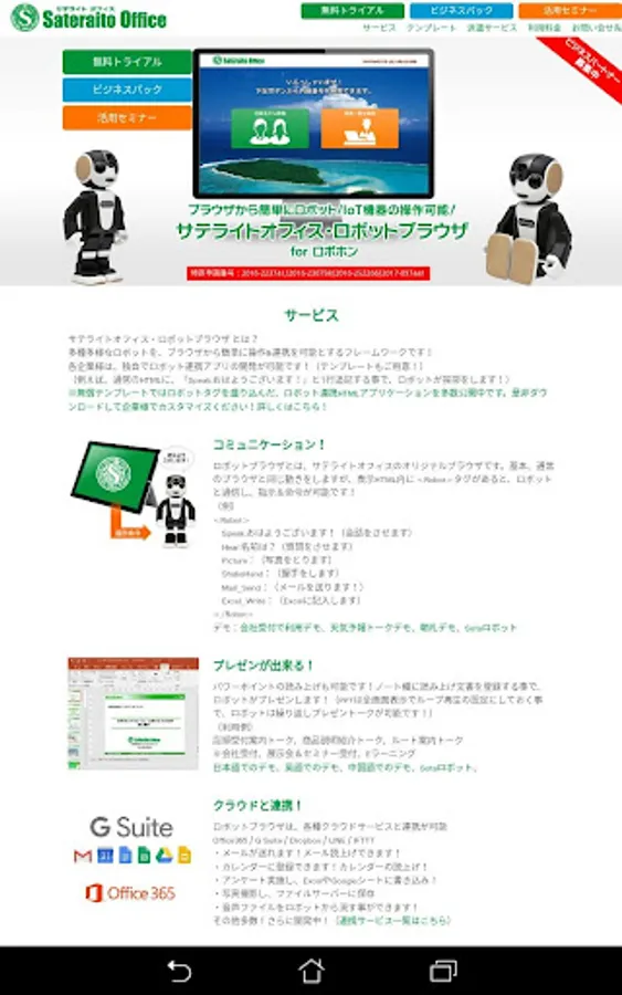 The satellite office · IoT application, running on Android, the smartphone / tablet, is an application platform for multi-function IoT terminal! On this, you can easily develop applications that were in companies like! Basically, in a dedicated application, because the browser is built-in, is a GUI in HTML can be designed!