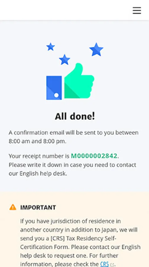 * Please note that U.S. citizens or those with jurisdiction of residence in countries other than Japan will be required to submit additional documentation.