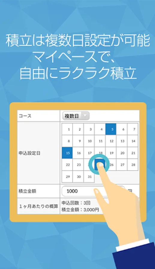 In the fund setting of investment trusts, the frequency of ordering once a month is the mainstream, but with this app, you can set the frequency up to every day!