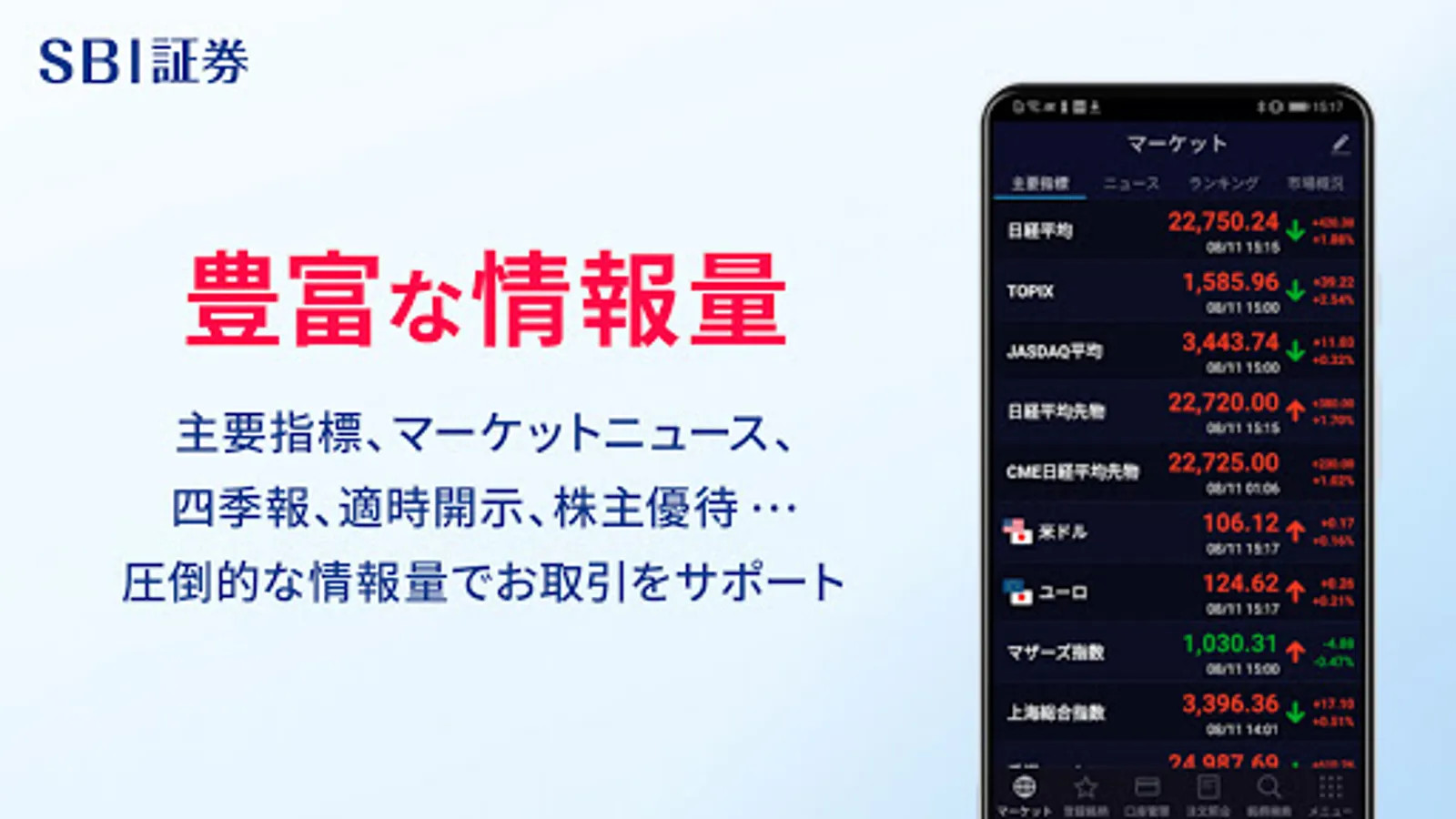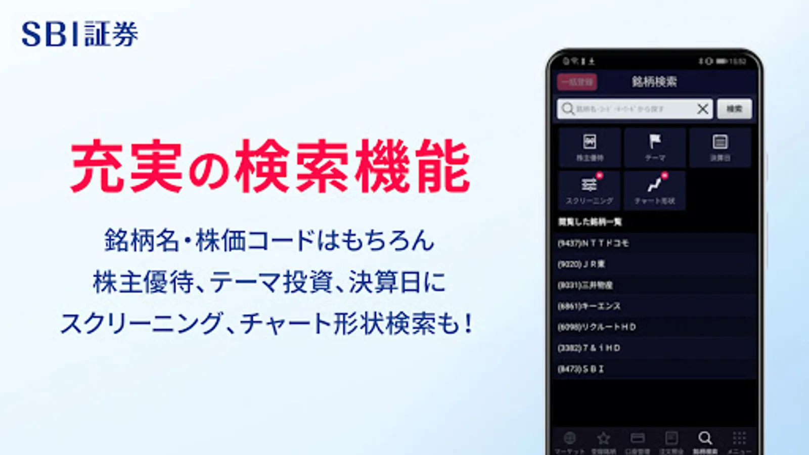 This is SBI Securities' domestic stock trading app that can be used conveniently by a wide range of people, from beginners to experienced investors, day traders to long-term investors.