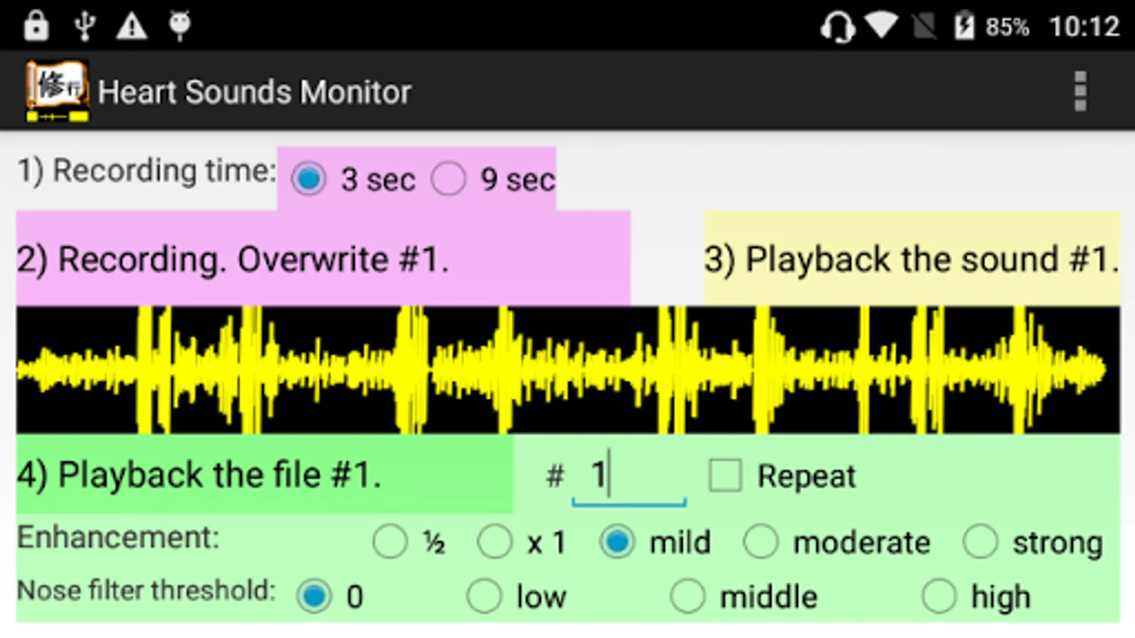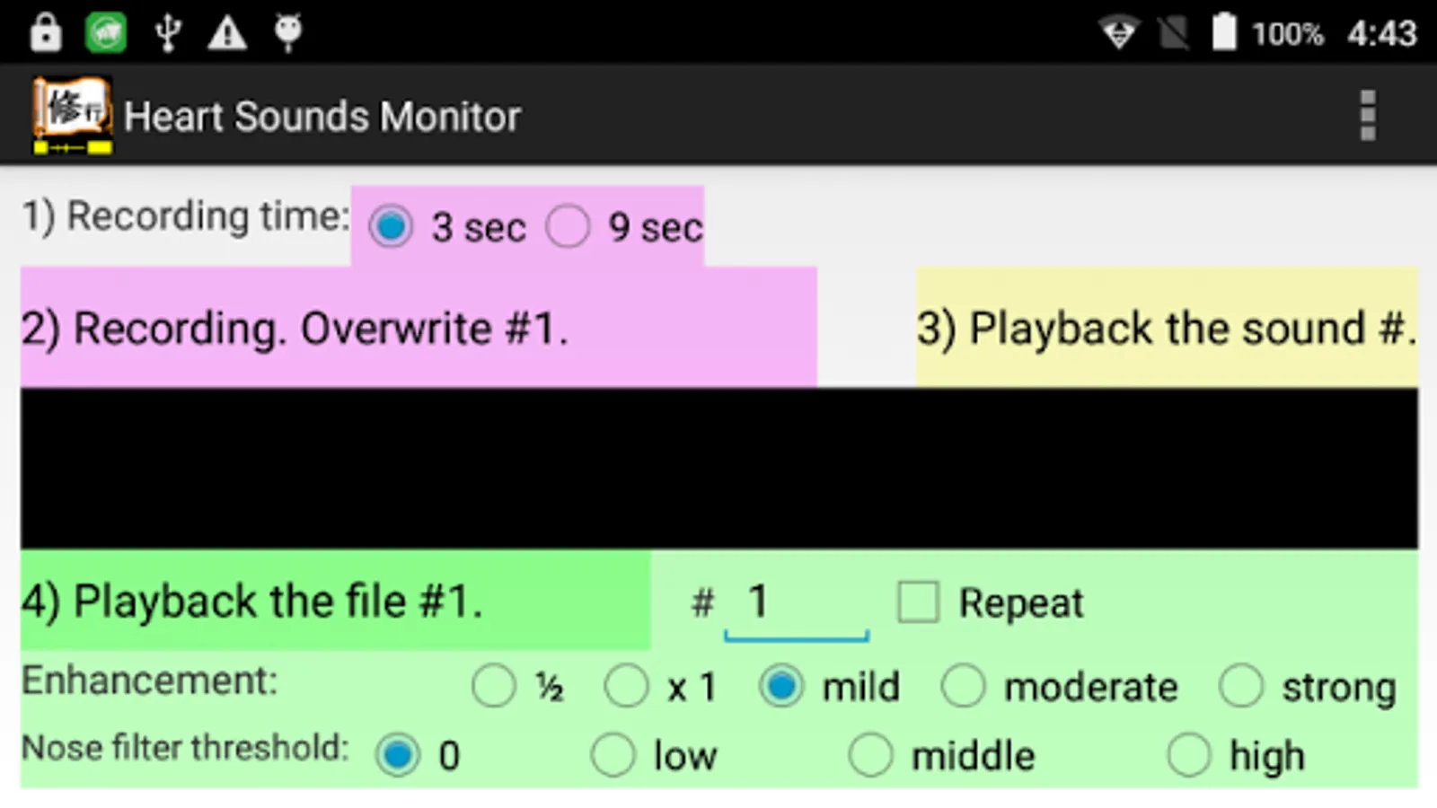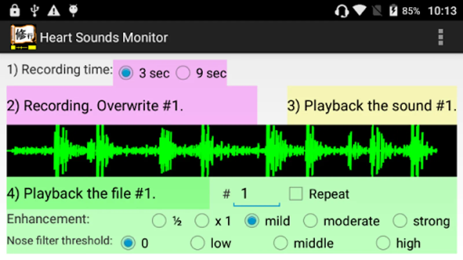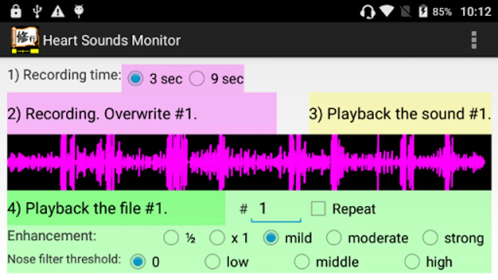 To assist auscultation at the bedside, this app visualizes the heart sounds and murmurs in real-time and saves the data in WAV files.