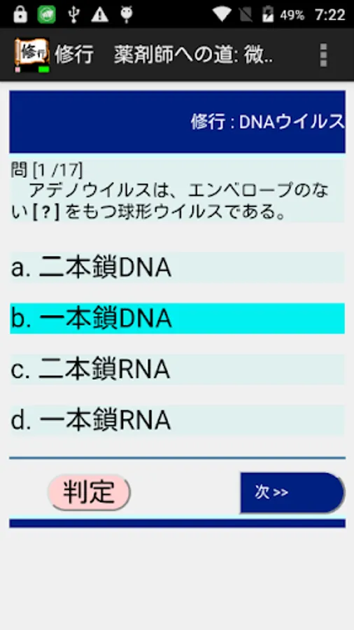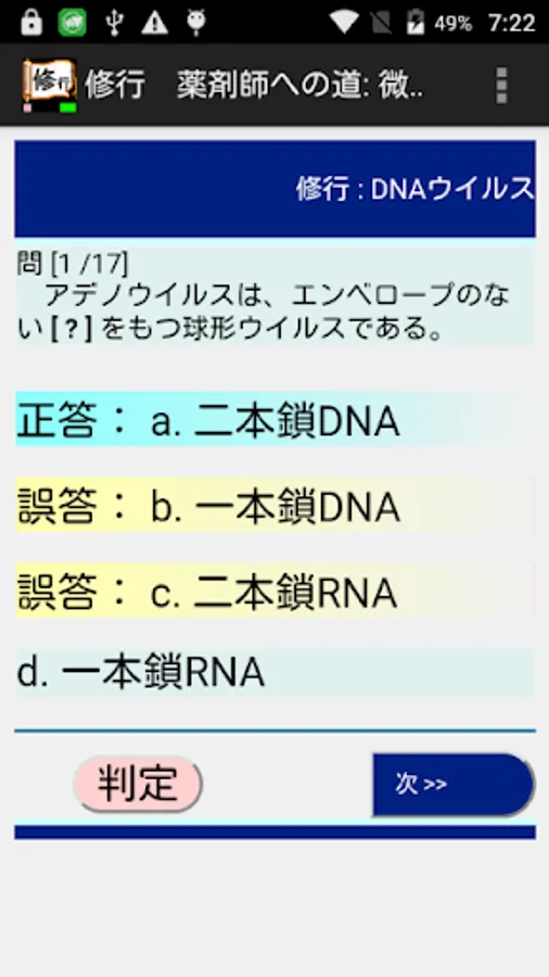 コース:修行では、各問題ごとに正否を判定できます。