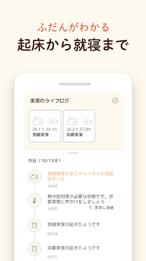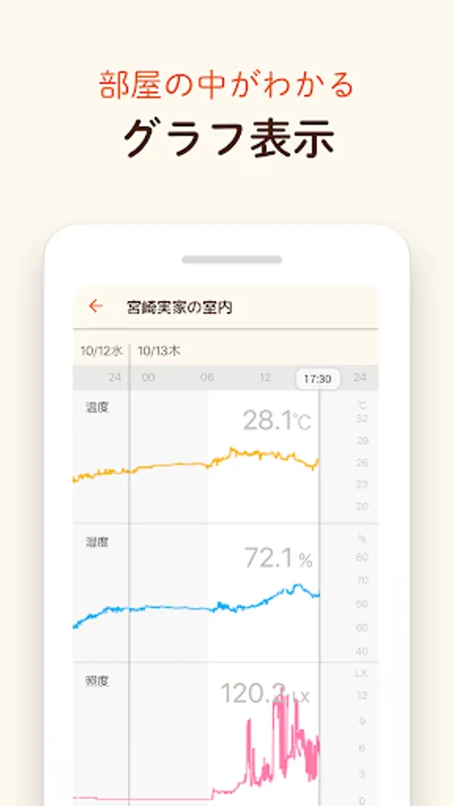 An environmental sensor installed in the main unit senses and records the temperature, humidity, and illuminance of the family room. You can check the graph in the app.