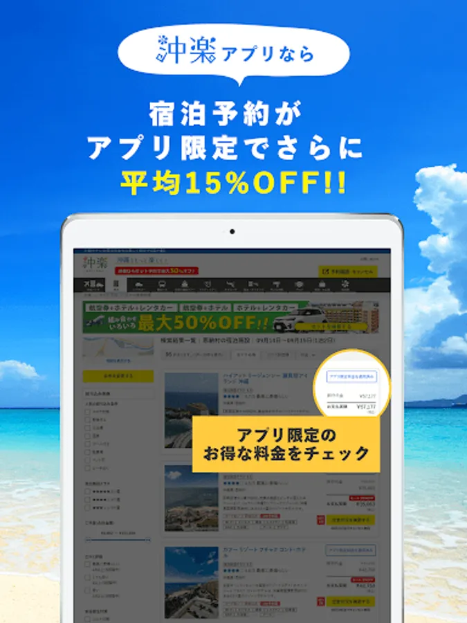 Both hotels and rental cars are offered at a special price only for Okiraku, which is limited to online reservations.