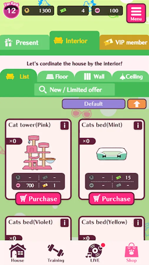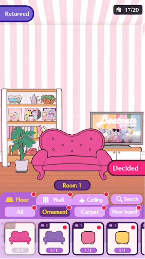 House : It's the lodgings where Beatcats live jointly. Let's present the furniture and the item to Beatcats and make them happy!