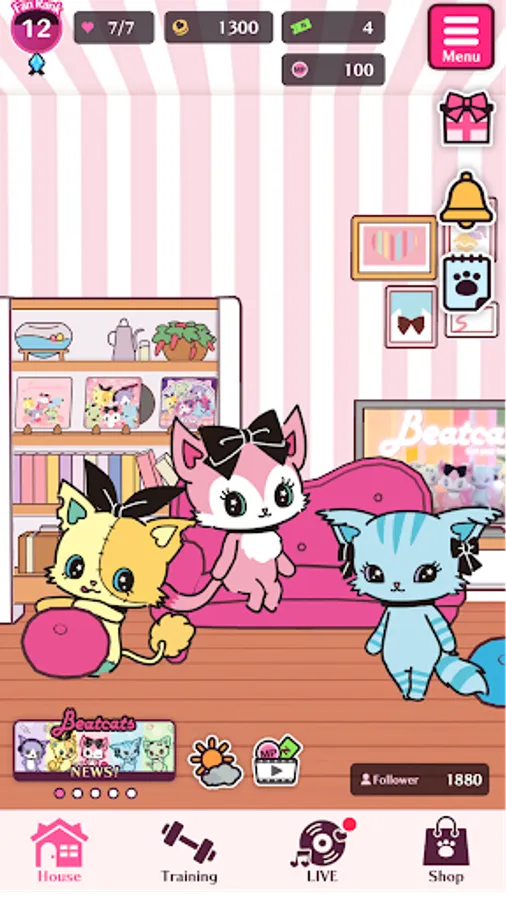 This is music game which you bring Beatcats up to the best artist by putting up your Fan Rank.