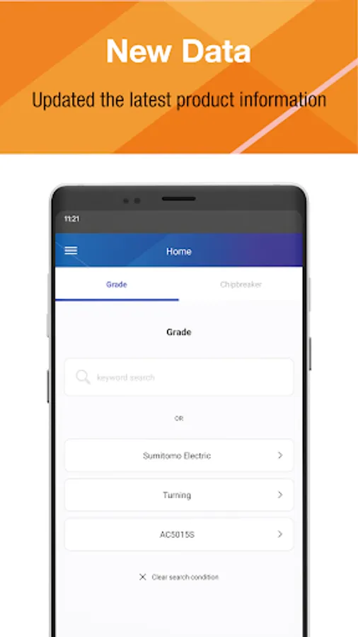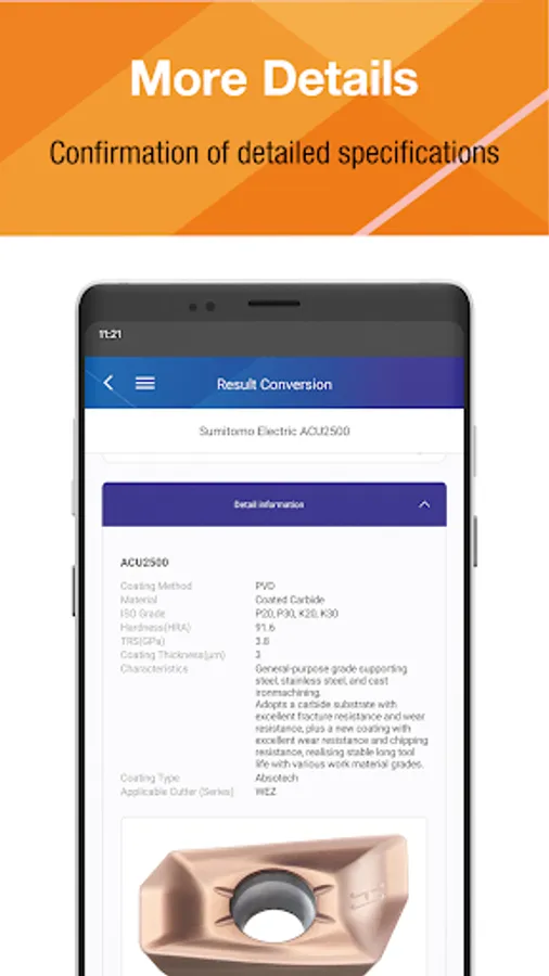 Application for turning grades and inserts of SUMITOMO ELECTRIC INDUSTRIES, LTD. which provides wide lineup for turning tools including Igetalloy, SUMIBORON and SUMIDIA.