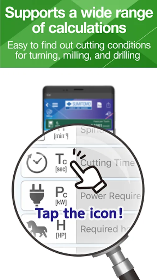 The Sumitomo Electric calculation function app "SumiTool Calculator" handles the complex equations used for turning, milling, and drilling.