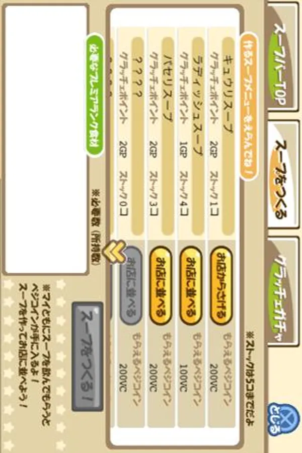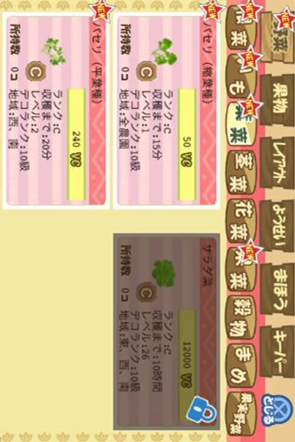TIPS from the vegetable sommelier appears when the vegetable of the premiere rank is grown, and moreover, the knowledge of the vegetable can be obtained, and [dekoaitemu] can be collected with the point that grows the vegetable and obtains it, and one's own, lovely farm be decorated while playing.
