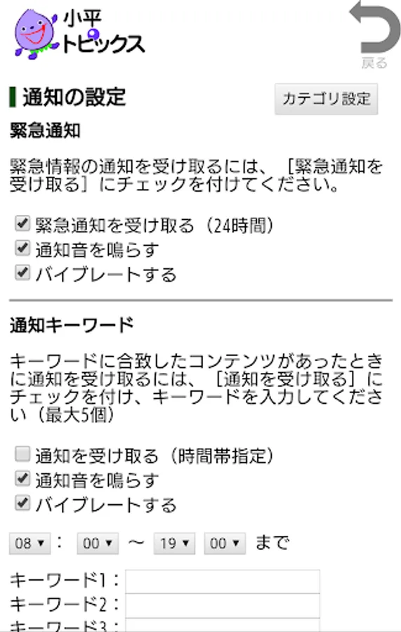 In addition to notification of the keyword, it also has a feature that will notify you if the "emergency information" has been published in Kodaira website.