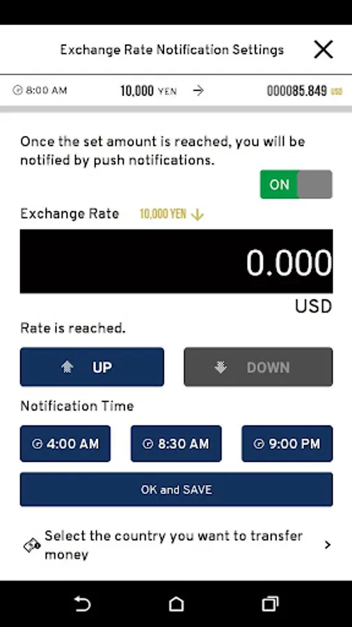 The exchange rate notification service is a push notification service where you will be notified when the set amount is reached.