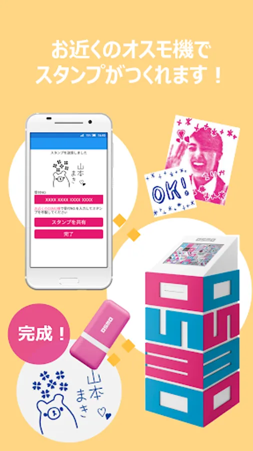 Design a stamp stamp face in the smartphone, it can be processed immediately to stamp at your local Osmo machine.