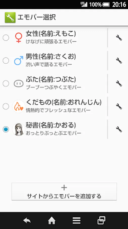 After installing this app, please set the character from "Emopa selection" of "Emopa" app.