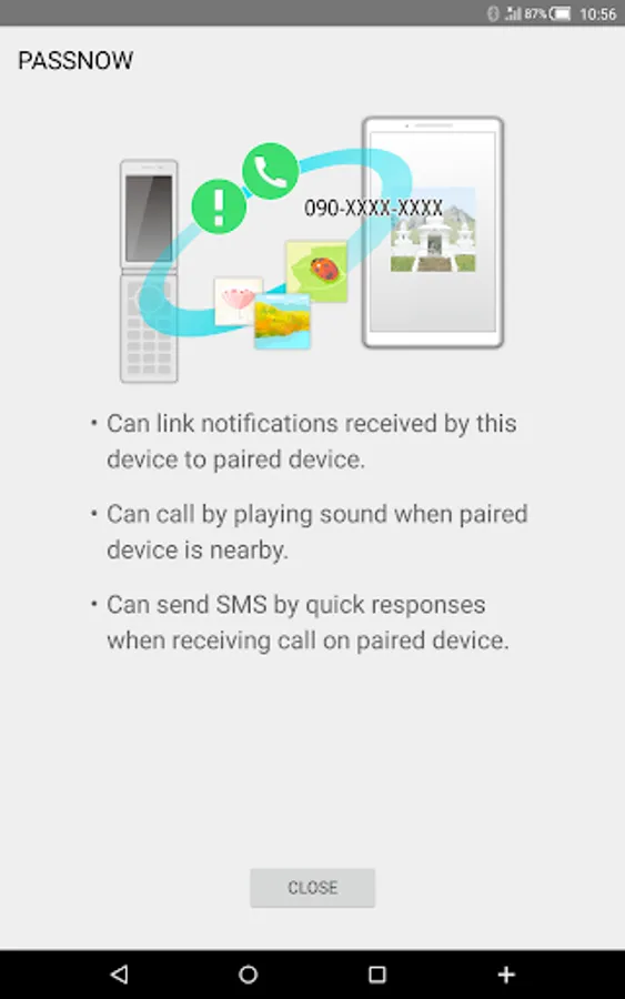 ・Transfer incoming call or mail notifications received on your mobile phone to your tablet.