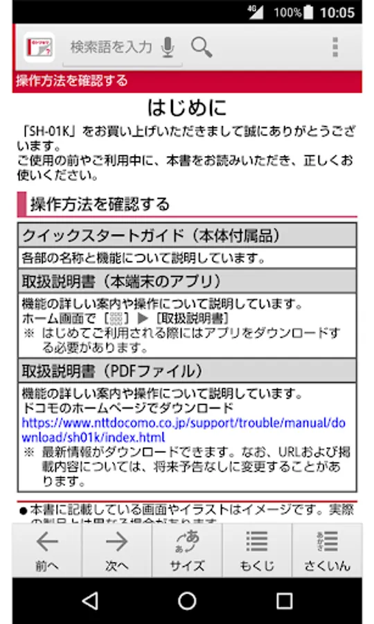 本アプリケーションはSH-01K用の取扱説明書(eトリセツ)ですので他の機種では起動できません。
