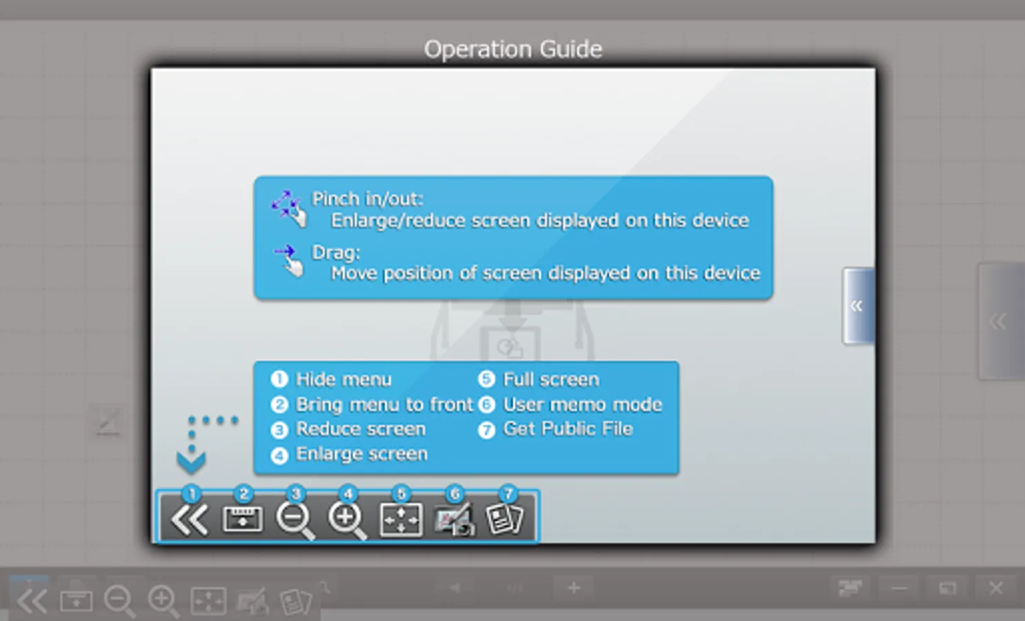"SHARP Display Connect" is a meeting support application that links a SHARP Touch Display or computer "host device" with a "client device" such as a tablet in a wireless LAN environment to enable sharing of information.