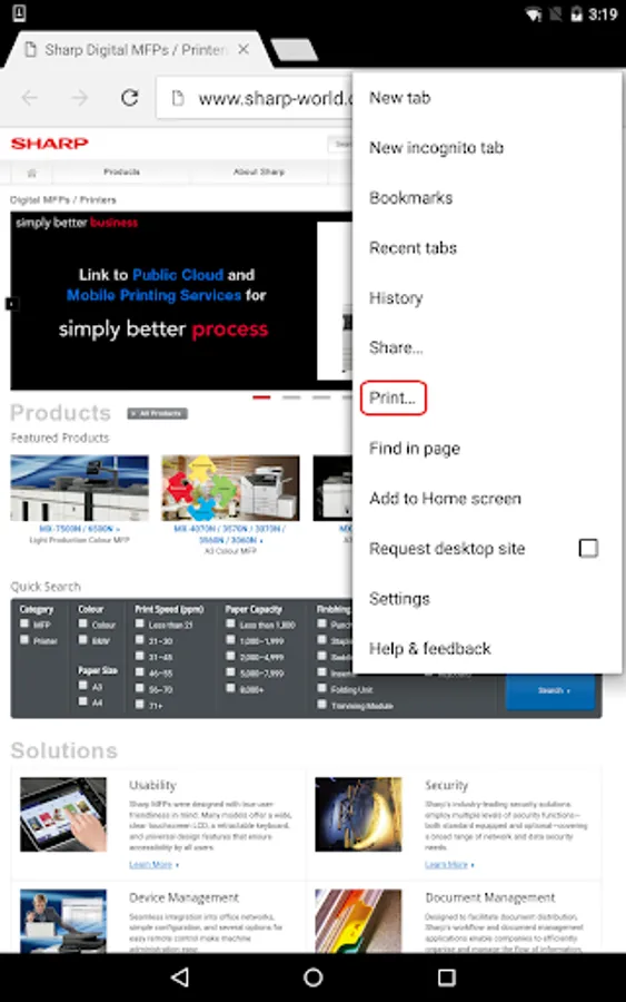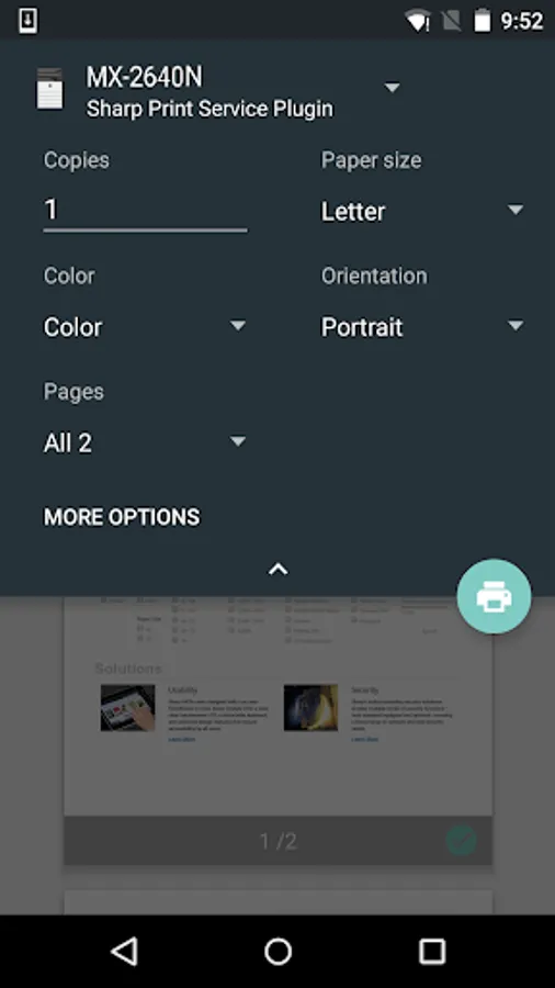 Please read through the End User License Agreement before using this app. For additional information, please refer to the Sharp Print Service Plugin details posted on http://sharp-world.com/products/copier/docu_solutions/mobile/Sharp_Print_Service_Plugin/index.html.