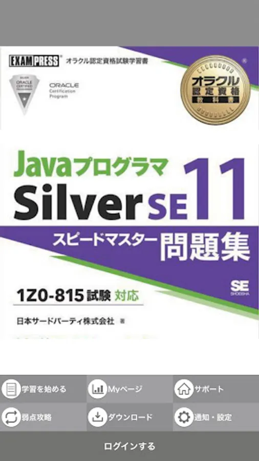 ※当アプリは、『オラクル認定資格教科書 Javaプログラマ Silver SE11 スピードマスター問題集(試験番号1Z0-815)』(翔泳社刊)をアプリ化したものです。