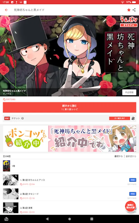 On Sunday Uburi, you can read comics using three types of items: tickets / coins / points.